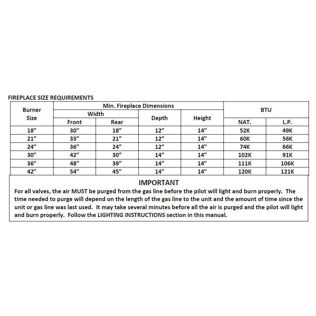 - For use with Grand Canyon AWO, AJ, ASPEN, BPS, MSO and WO gas logs
