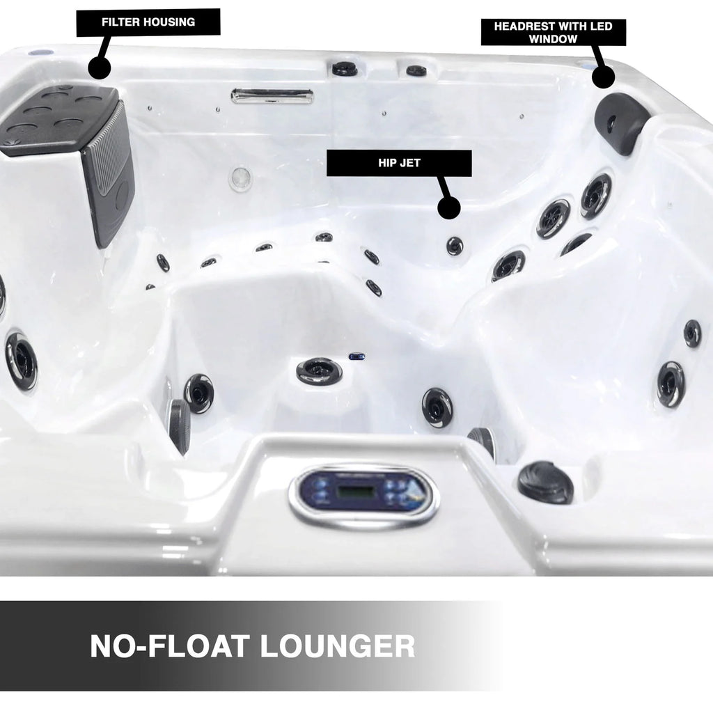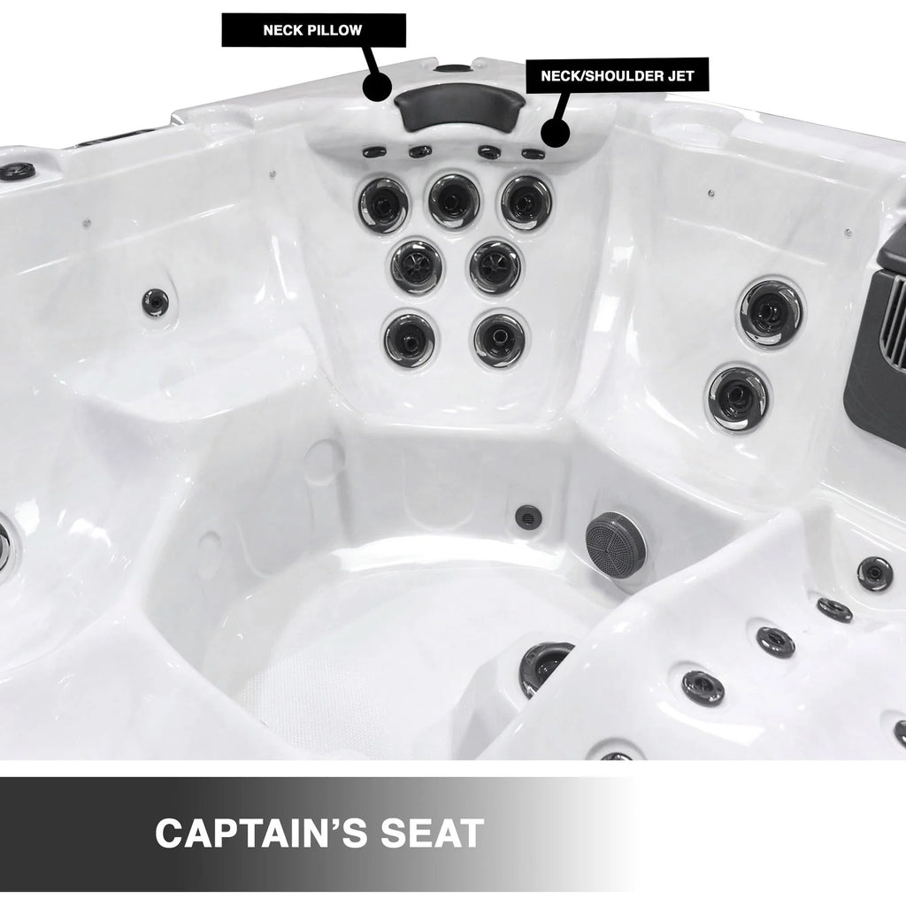 Inside, you’ll enjoy multi-level seating tailored for every type of soak, including a full-length no-float lounger for complete body support and a deep captain’s chair that allows you to fully submerge your shoulders for maximum relaxation.