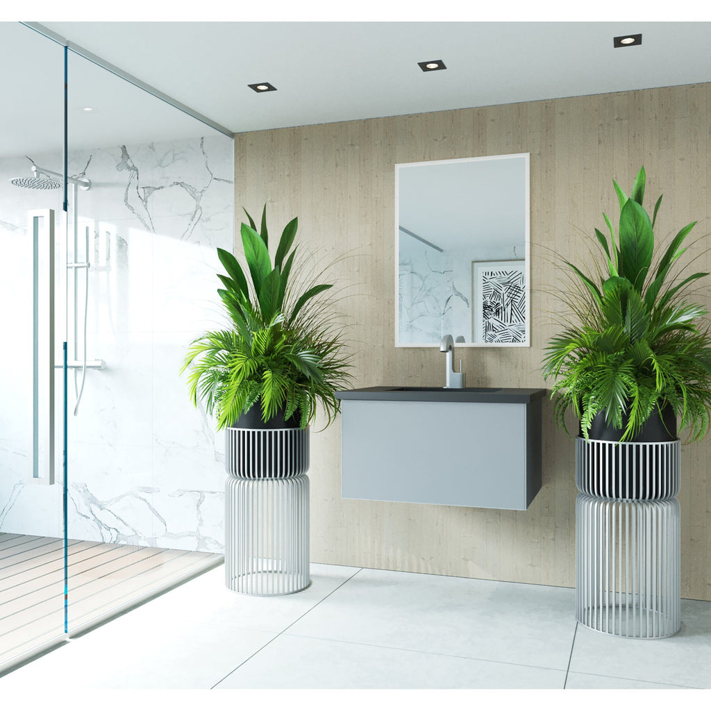 LAVIVA 313VTR-30FG-MB Vitri 30 Inch Fossil Grey Cabinet with Matte Black Stone Solid Surface Countertop