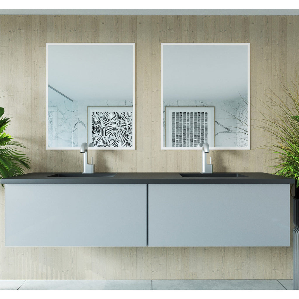 LAVIVA 313VTR-72DFG-MB Vitri 72 Inch Fossil Grey Double Sink Cabinet with Matte Black Stone Solid Surface Double Sink Countertop